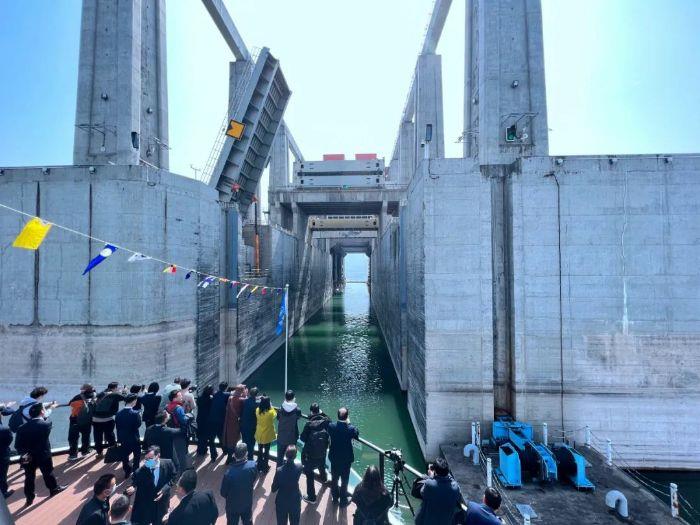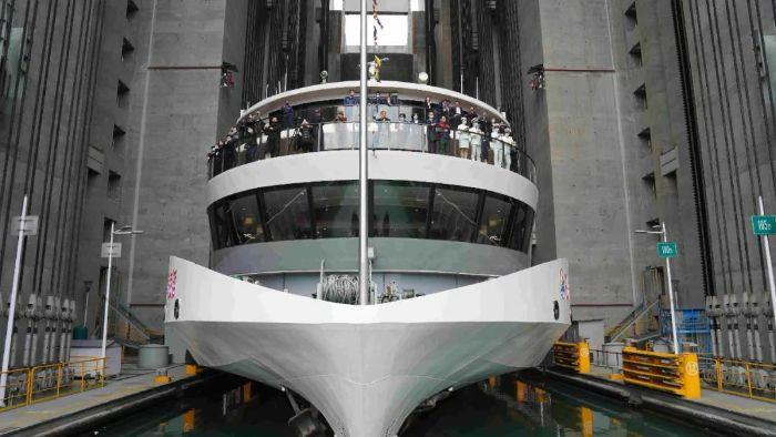 2016年9月18日,世界上規模最大、技術最復雜、運行維護難度最高的全平衡垂直升船機——三峽升船機試通航。如果形容船舶過三峽船閘為“大船爬樓梯”,那么過三峽升船機就成了“小船坐電梯”。“三峽升船機與三峽雙線五級船閘、葛洲壩船閘聯合匹配運行,共同構成了三峽—葛洲壩梯級樞紐水運通道,提高了過壩效率。”三峽集團流域管理中心樞紐管理部副主任專業師張巖介紹說。