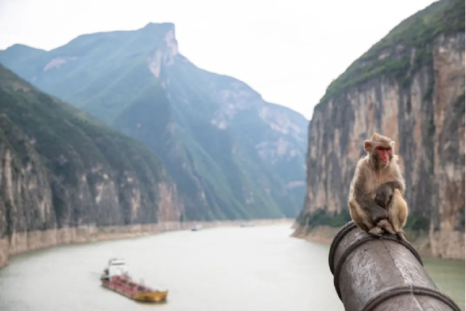 ▲?在重慶市奉節縣瞿塘峽拍攝的猴子。攝影:新華社記者 儲加音