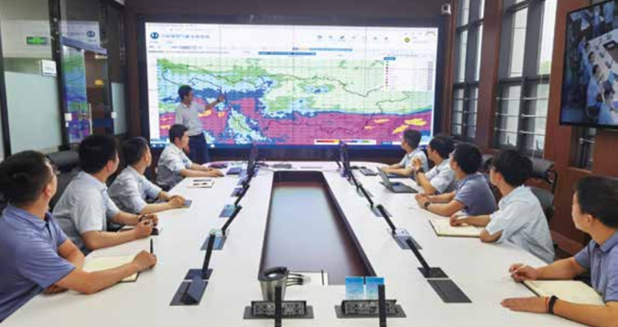 ▲?三峽梯調(diào)中心開展水文氣象會商。攝影:莫祖鳳