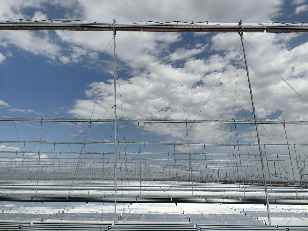 沿著高速去往哈密城郊更偏遠(yuǎn)處,晴空萬里,太陽依舊炙烤著大地,路邊葡萄架投下的狹小陰影是這一路唯一的蔭蔽,也難怪沿途幾乎不見人影,只有大大小小的汽車飛馳而過。