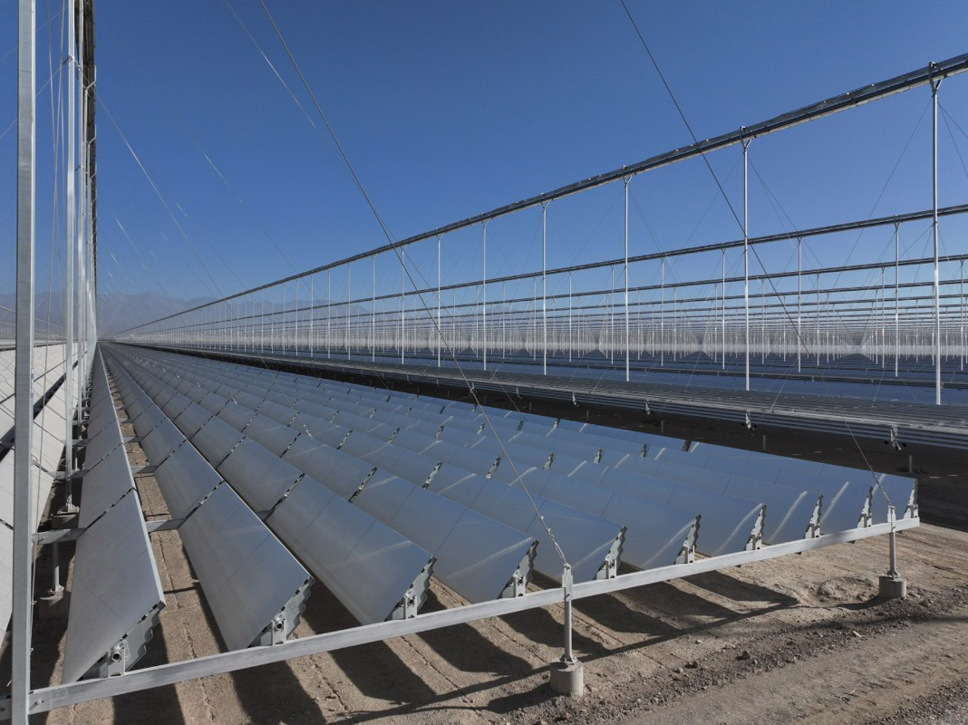 該項(xiàng)目最值得一提的,是其采用的“線性菲涅爾”技術(shù)。“線性菲涅爾”技術(shù)是太陽能光熱發(fā)電技術(shù)的一種,因其采用了法國物理學(xué)家菲涅爾所提出的光的反射和折射原理而得名。該技術(shù)使用多排安裝在地面上的、平面或微曲的反射鏡,通過單軸追蹤太陽,將陽光精確地反射到位于高處的固定集熱管上,進(jìn)而再將熱能轉(zhuǎn)化為電能。相比起傳統(tǒng)的“塔式菲涅爾”,“線性菲涅爾”對場地要求低,其分布式控制也有效提升了發(fā)電的可靠性,降低了運(yùn)維成本。