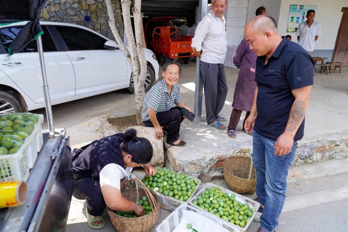 ▲?在權發村,隨處可見脆李交易的熱鬧畫面